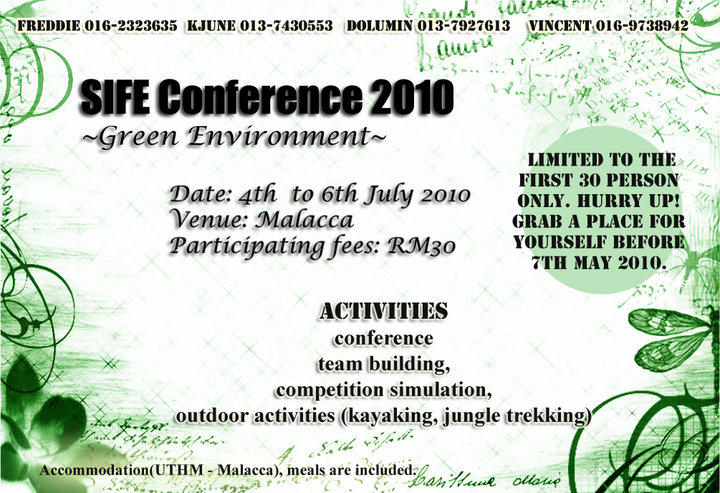 Hey SIFErs, have you signed up for SIFE UTHM Conference 2010? This is an important event which will determine the future of SIFE UTHM. We welcome you to join us and find out more!